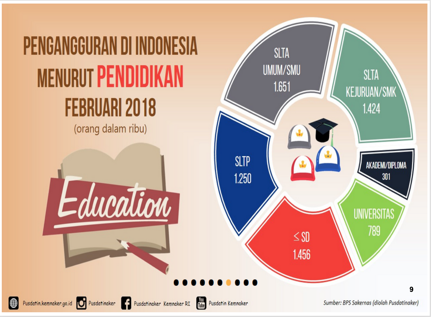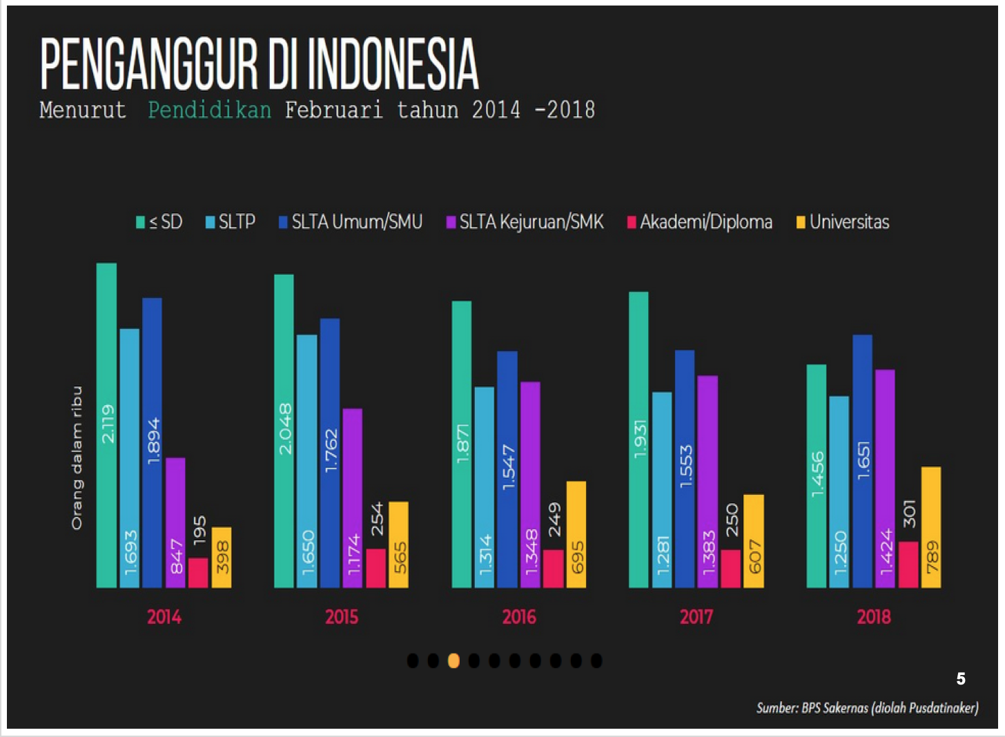 Penganggur di Indonesia Menurut Pendidikan Februari Tahun 2014 - 2018