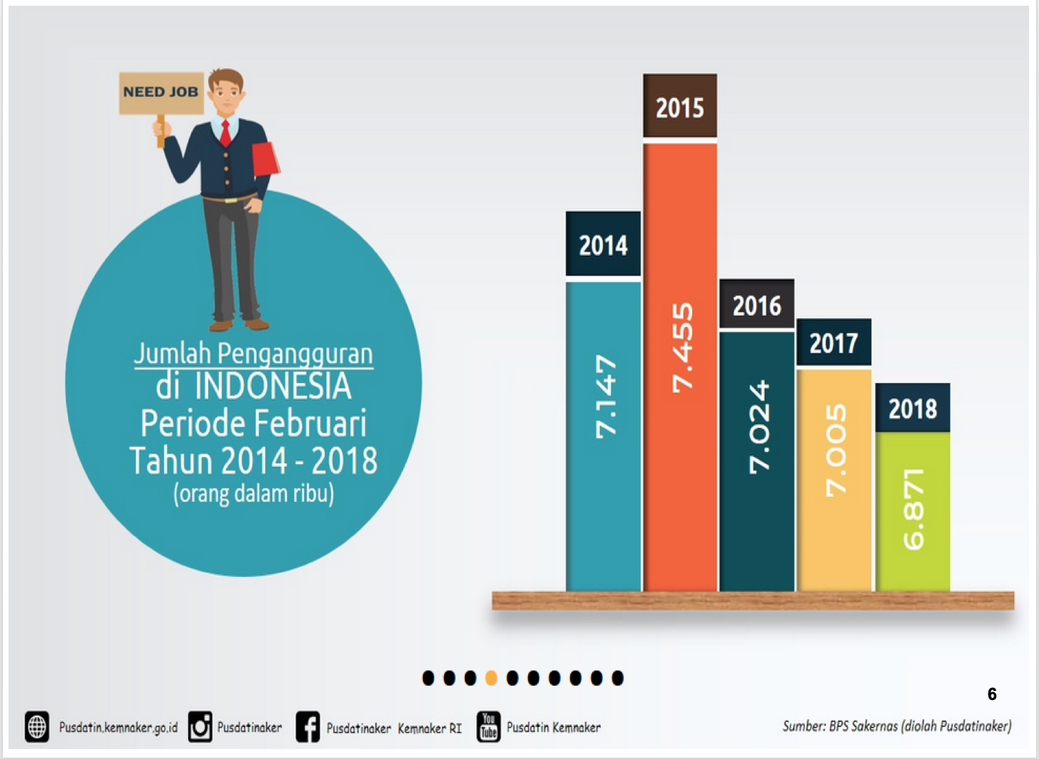 Jumlah Pengangguran di Indonesia Periode Februari Tahun 2014 - 2018