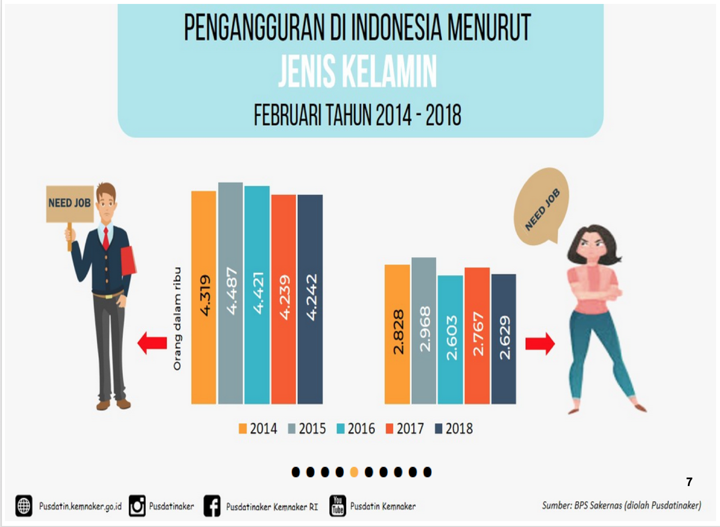 Pengangguran di Indonesia Menurut Jenis Kelamin Februari Tahun 2014 - 2018