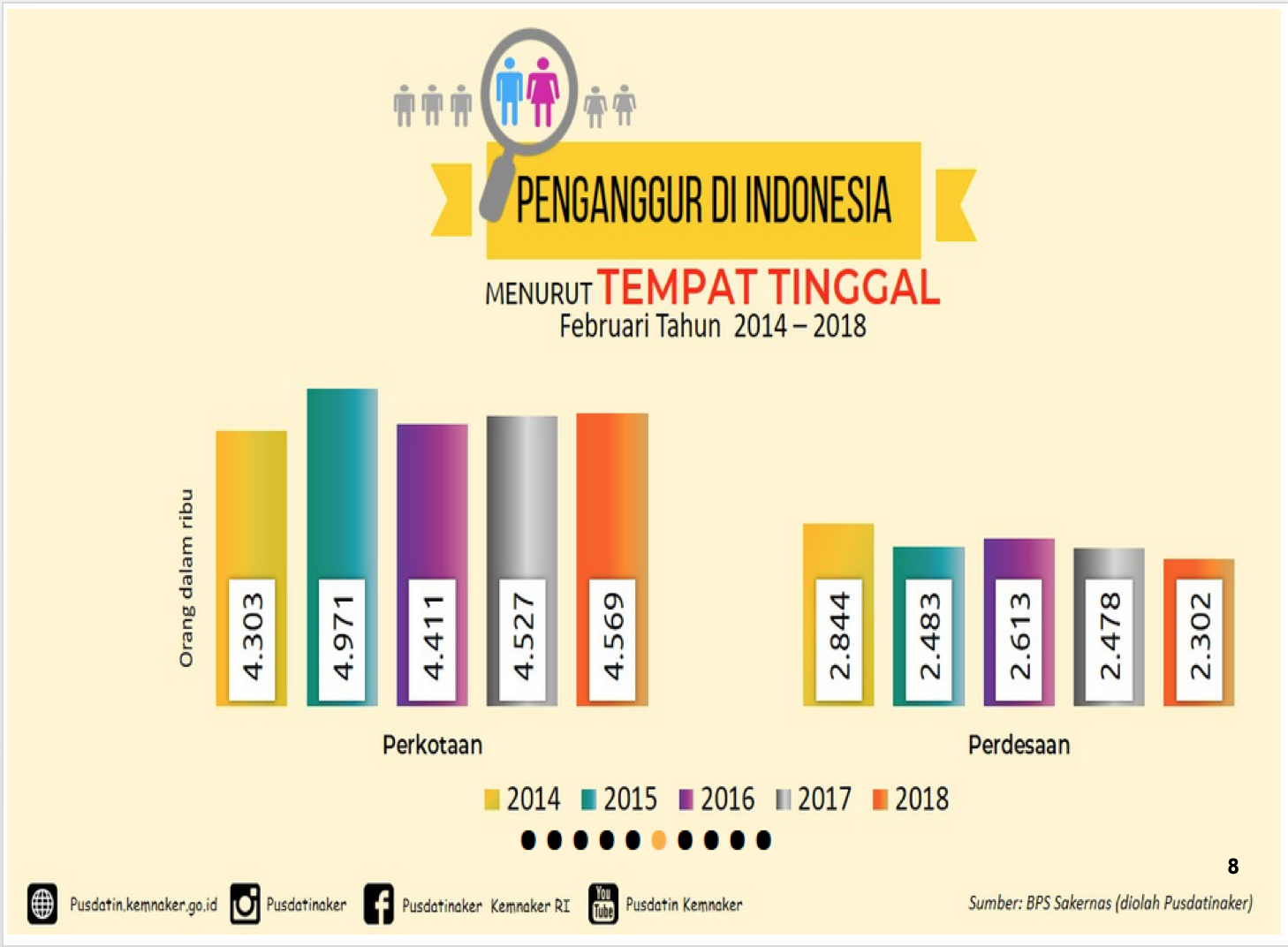 Penganggur di Indonesia Menurut Tempat Tinggal Februari Tahun 2014 - 2018
