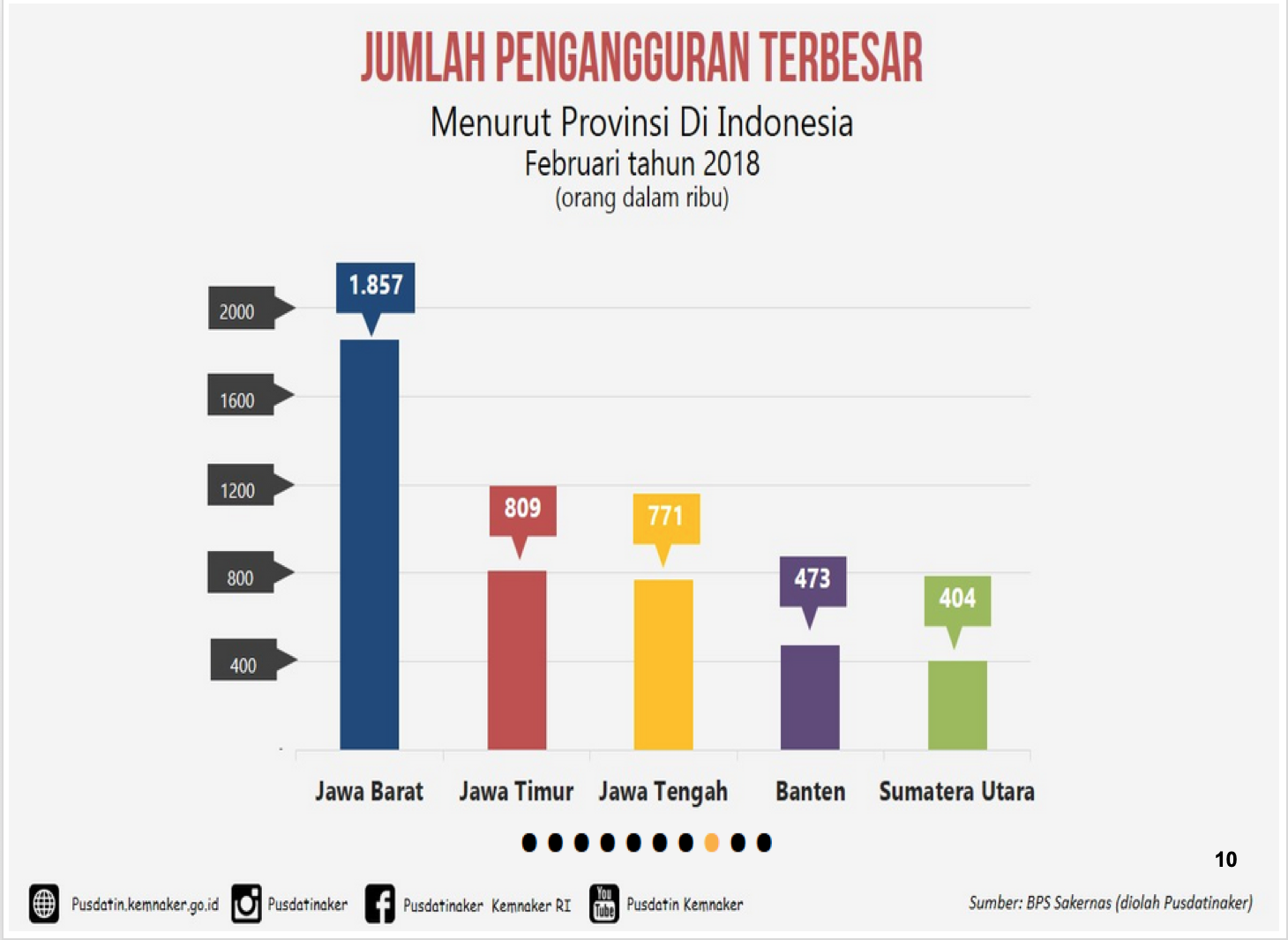 Jumlah Pengangguran Terbesar Menurut Provinsi di Indonesia Februari 2018