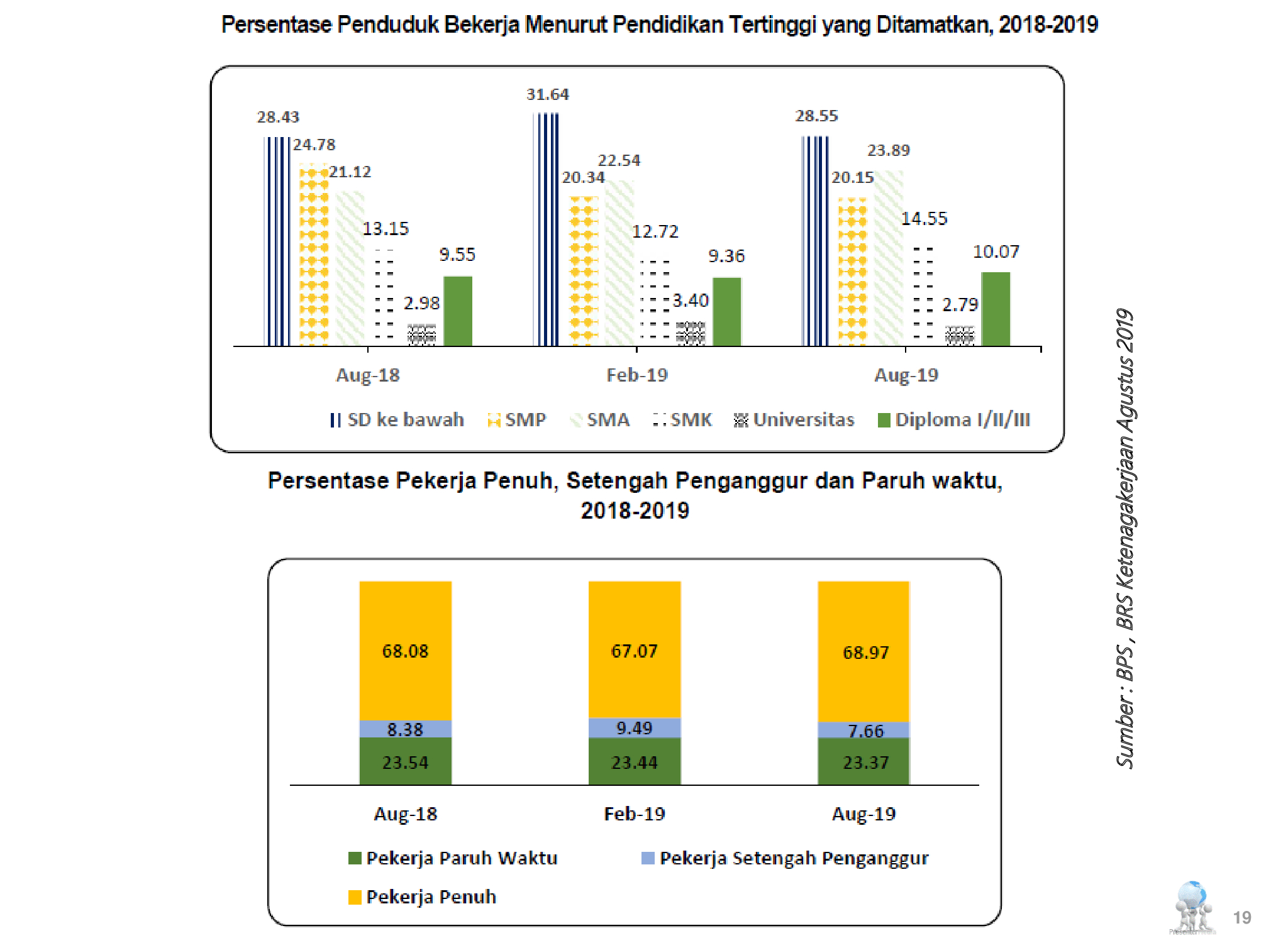 Persentase Penduduk Bekerja Menurut Pendidikan Tertinggi yang Ditamatkan 2018-2019