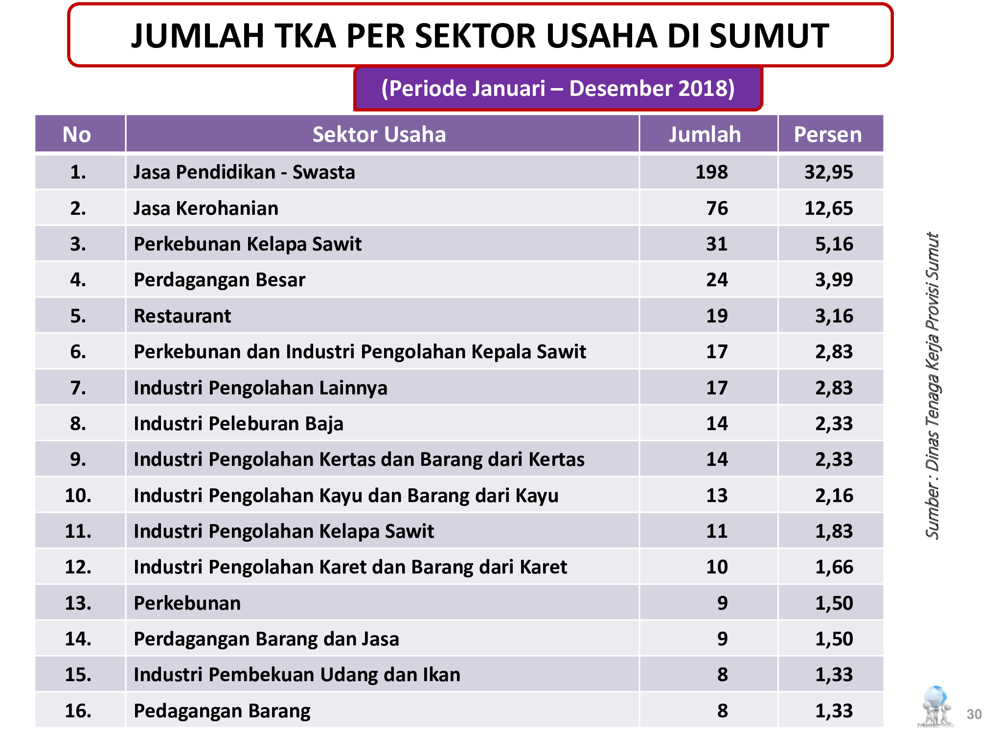 Jumlah TKA Per Sektor Usaha di Provinsi Sumatera Utara