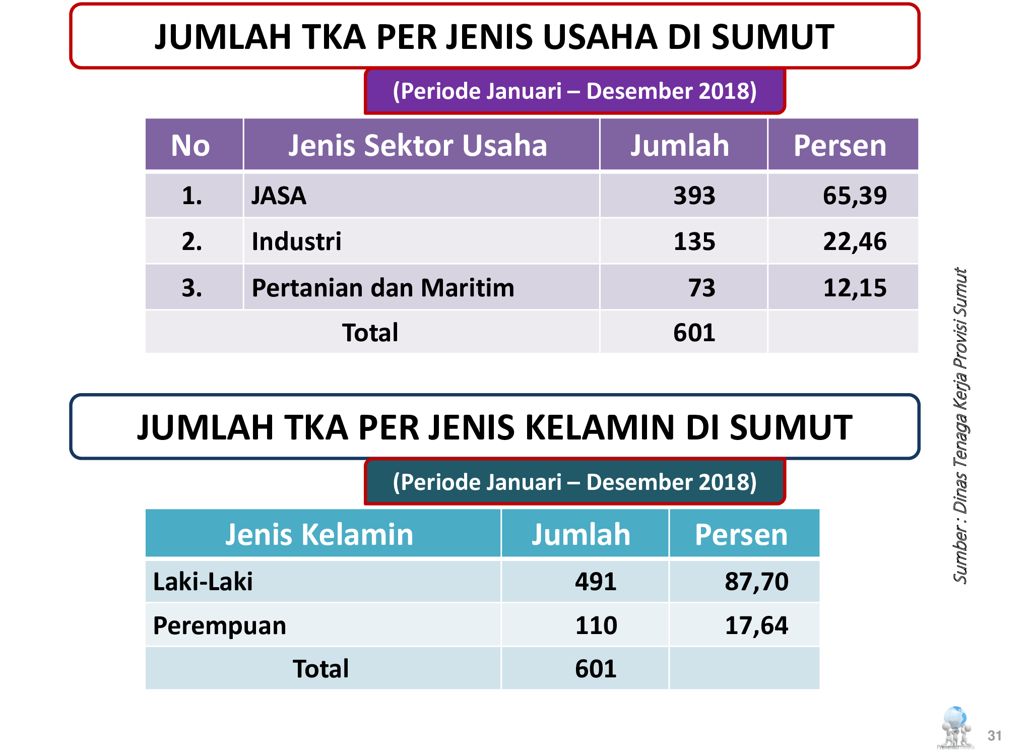 Jumlah TKA Per Jenis Usaha di Provinsi Sumatera Utara