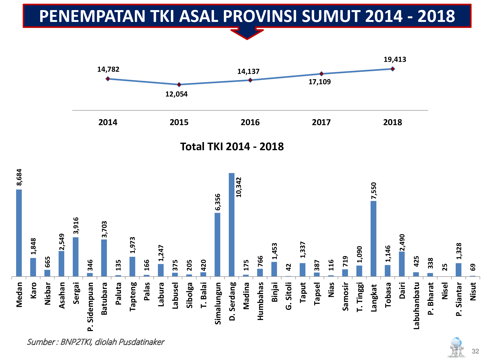 Penempatan Tenaga Kerja Indonesia (TKI) Asal Provinsi Sumatera Utara 2014-2018