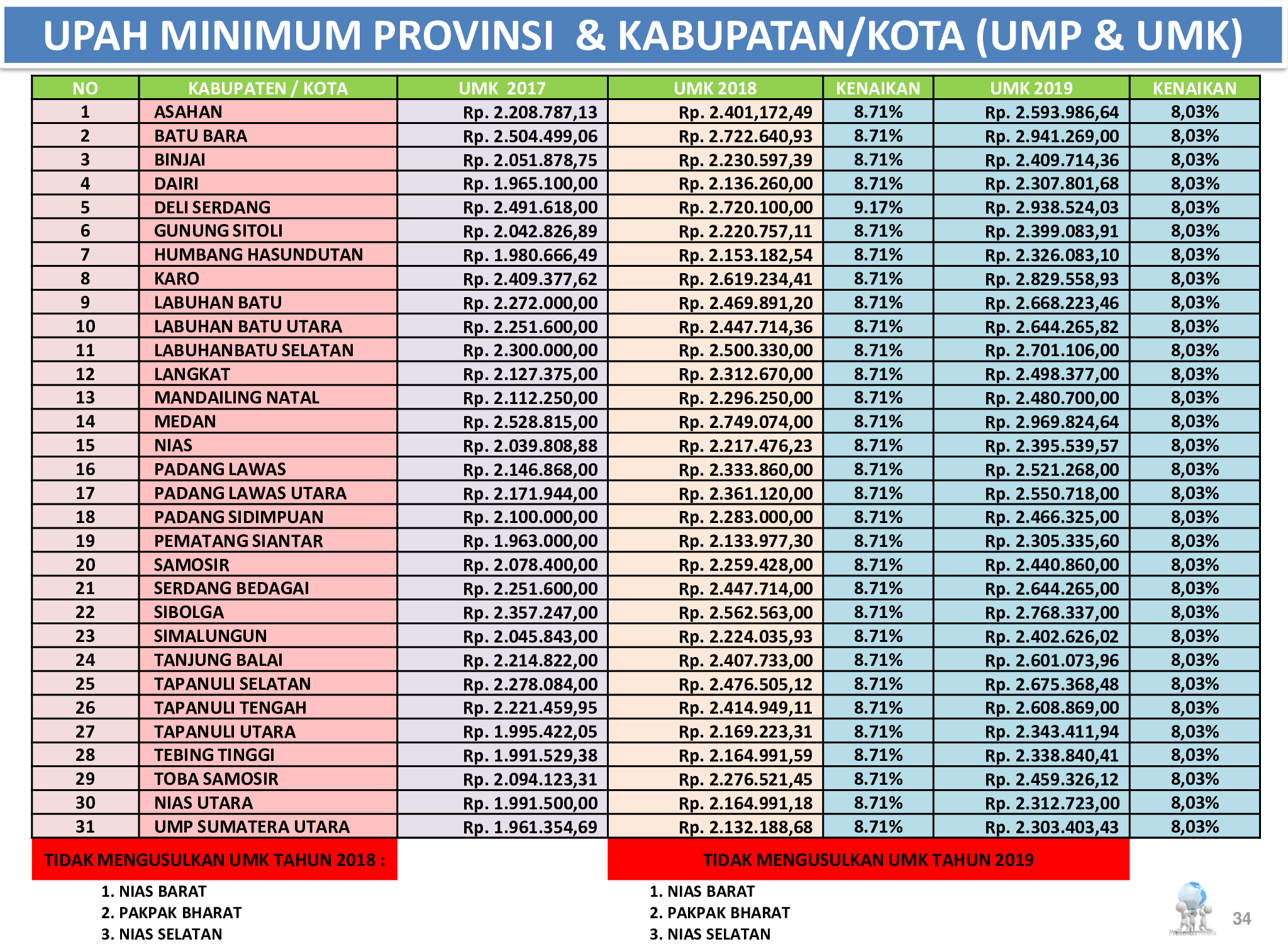 Upah Minimum Provinsi dan Kabupaten/Kota (UMP & UMK) Tahun 2019