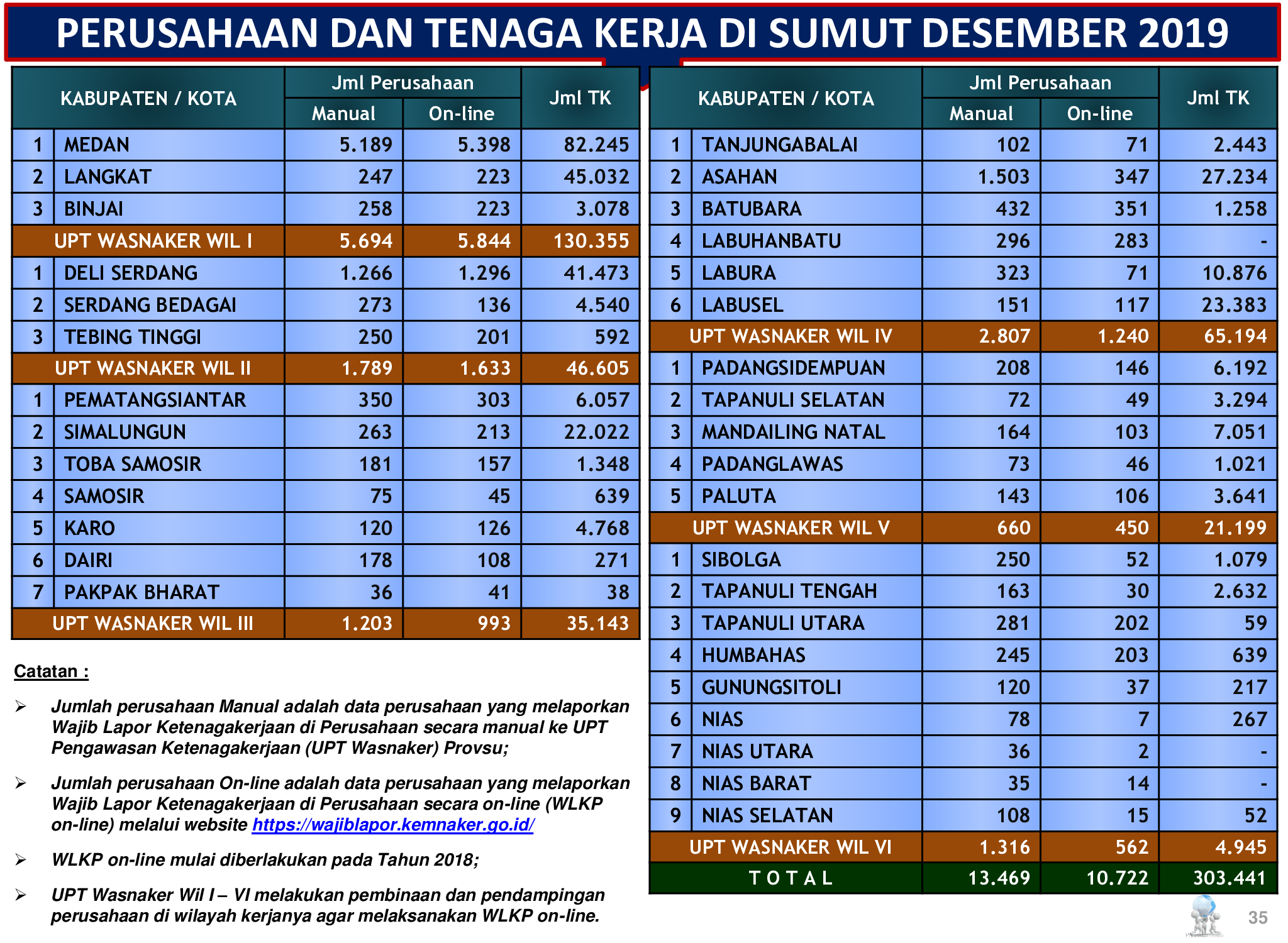 Perusahaan dan Tenaga Kerja di Provinsi Sumatera Utara Desember 2019