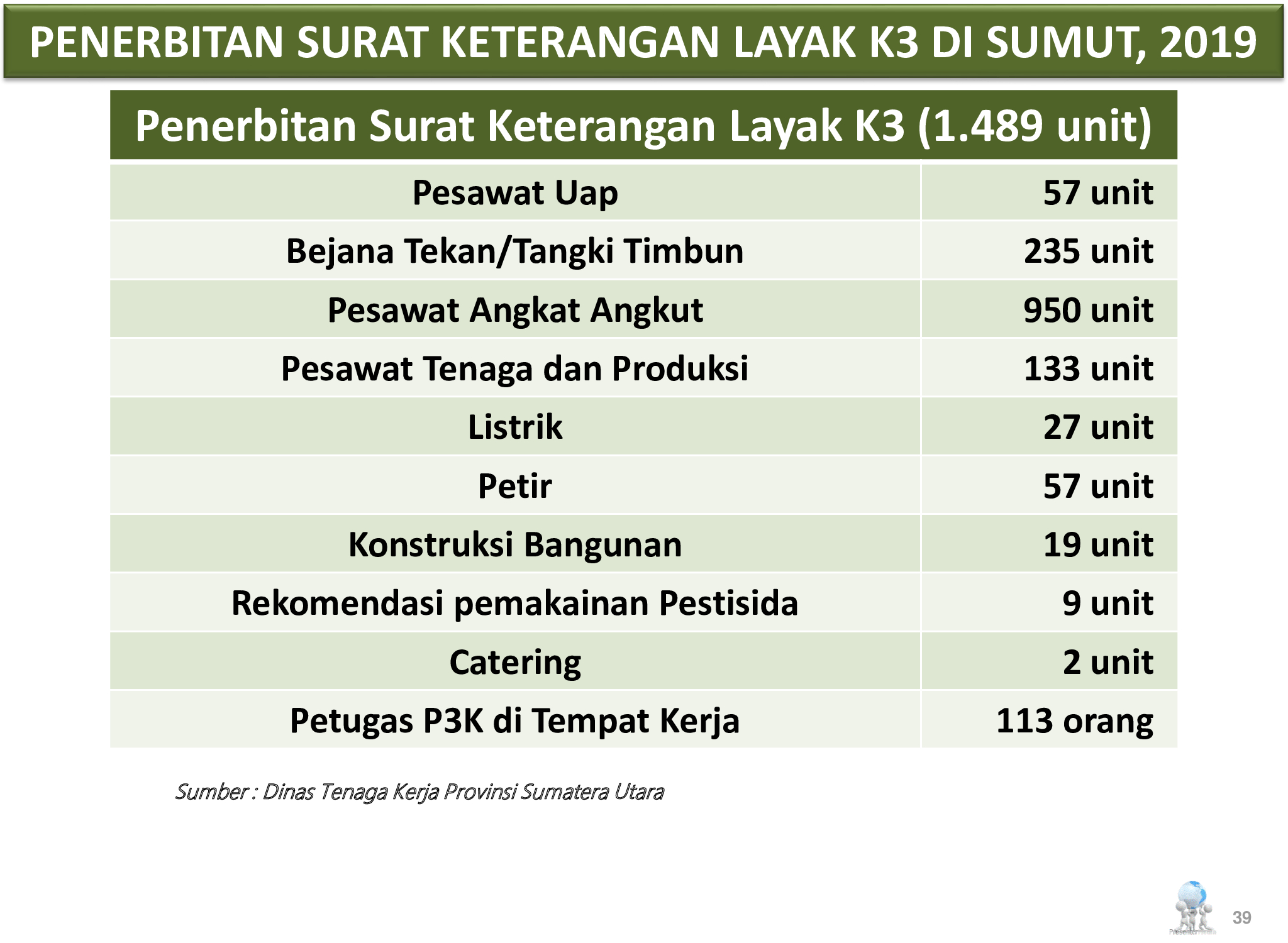 Penerbitan Surat Keterangan Layak K3 di Provinsi Sumatera Utara Tahun 2019