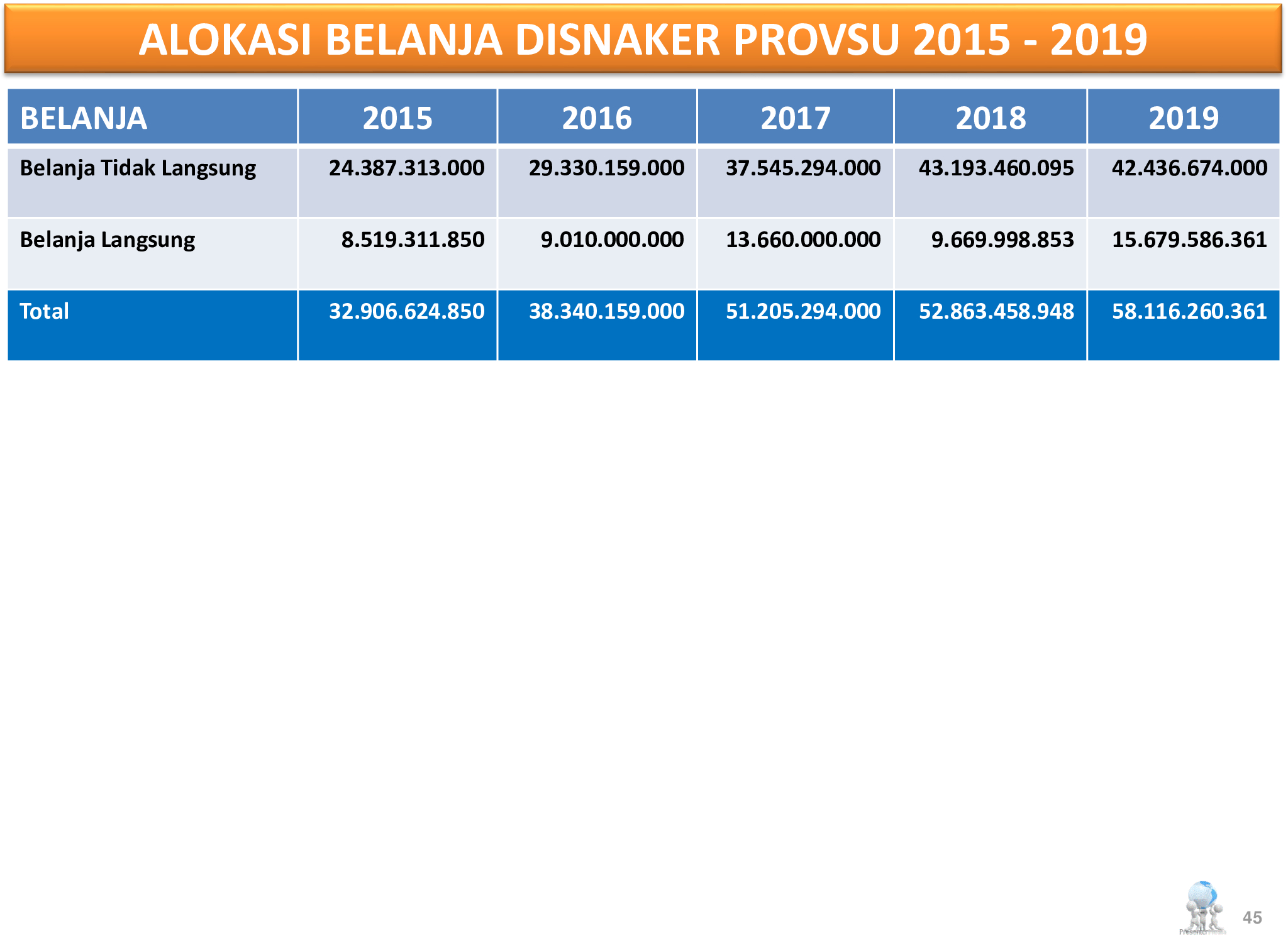 Alokasi Belanja Dinas Tenaga Kerja Provinsi Sumatera Utara 2015-2019