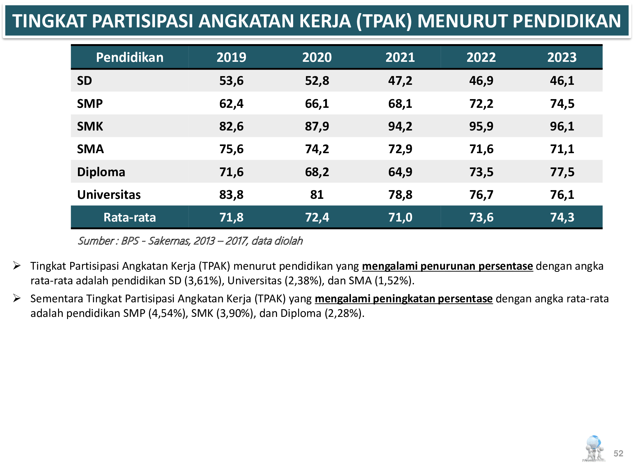 Tingkat Partisipasi Angkatan Kerja (TPAK) Menurut Pendidikan